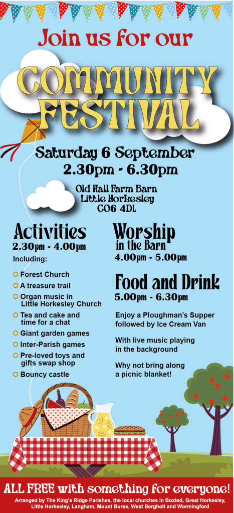 If you wish to have an item included in this newsletter, please email us at newsandevents@boxted.org.uk by Thursday 5pm at the latest. Thank you.