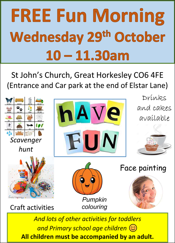 The Zone for 6-11 year olds 5.30pm-7pm and the Edge for 12-18 year olds 7.30pm-9.00pm. Fortnightly during term time at St Peter’s Church. Contact Linda Sheil 01206 273324