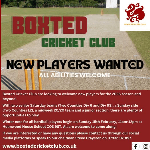 If you wish to have an item included in this newsletter, please email us at newsandevents@boxted.org.uk by Thursday 5pm at the latest. Thank you.